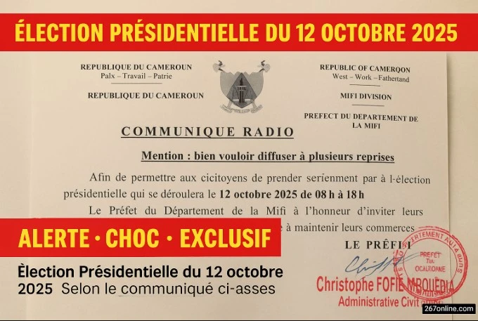 À deux jours du scrutin présidentiel du 12 octobre 2025, le préfet du département de la Mifi, Christophe Fofié Mbouédia, a signé un communiqué radio ordonnant la fermeture des commerces de 8h à 18h pour garantir un climat de sérénité pendant le vote. Seules les pharmacies, stations-service, formations hospitalières et boulangeries resteront ouvertes.