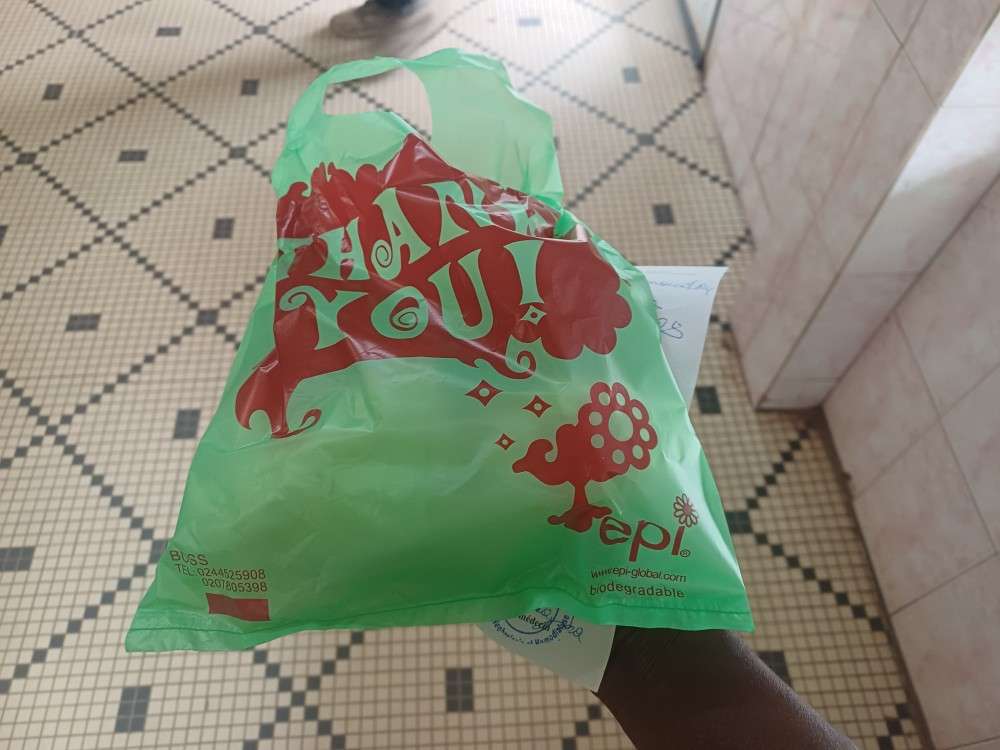 Environ 20 heures, route de Karpala. Nous stationnons devant une boutique pour acheter du jus de fruits à consommer plus tard. Comme à l’accoutumée, nous nous attendons à ce que le produit soit servi dans un sachet plastique pour en faciliter le transport, d’autant plus que nous sommes à moto. C’est avec étonnement que nous voyons la boutiquière nous tendre les deux briques de jus sans les avoir emballées au préalable. Avant que nous ne puissions lui faire des reproches, celle-ci nous lance : « On a dit de ne plus vendre avec les sachets. Mais nous avons des sacs si vous voulez ».