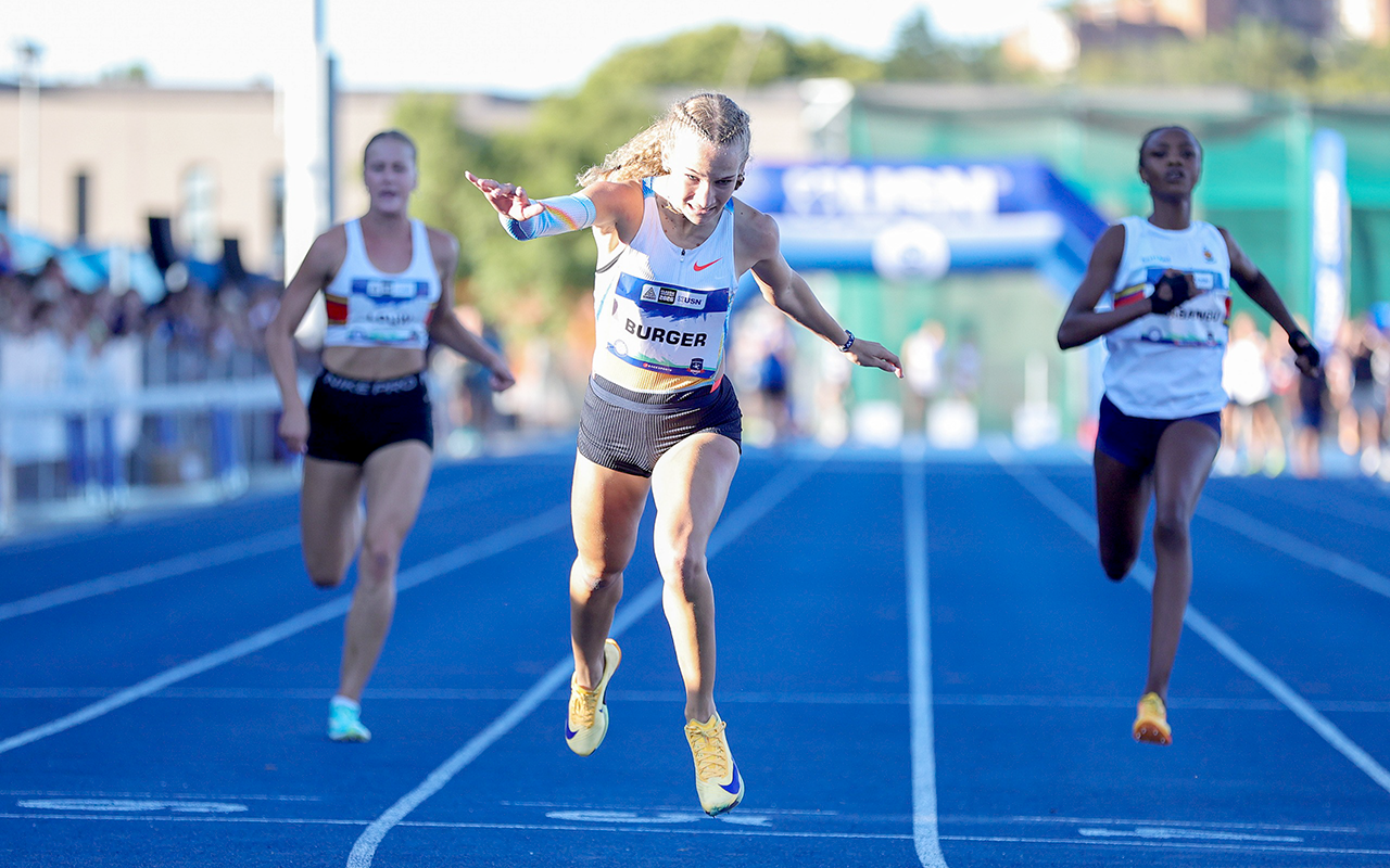 Adding to the excitement was the performance of 18-year-old Carise van Rooyen. The U20 800m champion showed she is more than capable of mixing it with the seniors, claiming a brilliant third-place finish in 2:43.53, ahead of steeplechase specialist Carina Swiegers.
