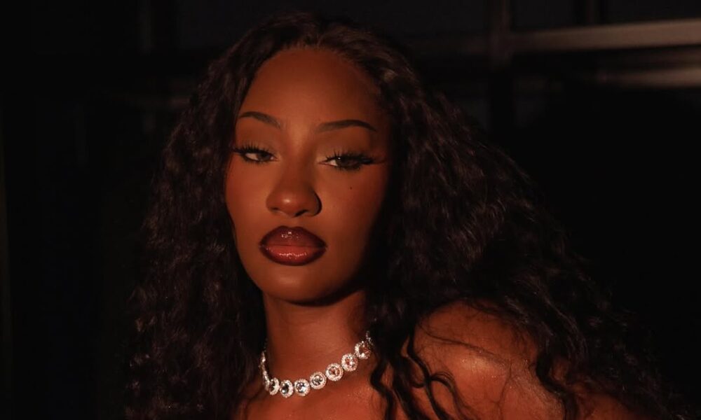 The Nigerian singer stepped out for Dave‘s concert wearing a form-fitting white midi dress covered in black polka dots, with a straight strapless neckline sitting clean across the chest. She paired the look with a chunky silver chain-link necklace sitting close to the collarbone, a matching silver bracelet, a silver ring and long voluminous dark curls falling well past her shoulders. A deep berry lip finished the whole thing off beautifully. It was a look that was put together without being overdressed, and it worked completely.