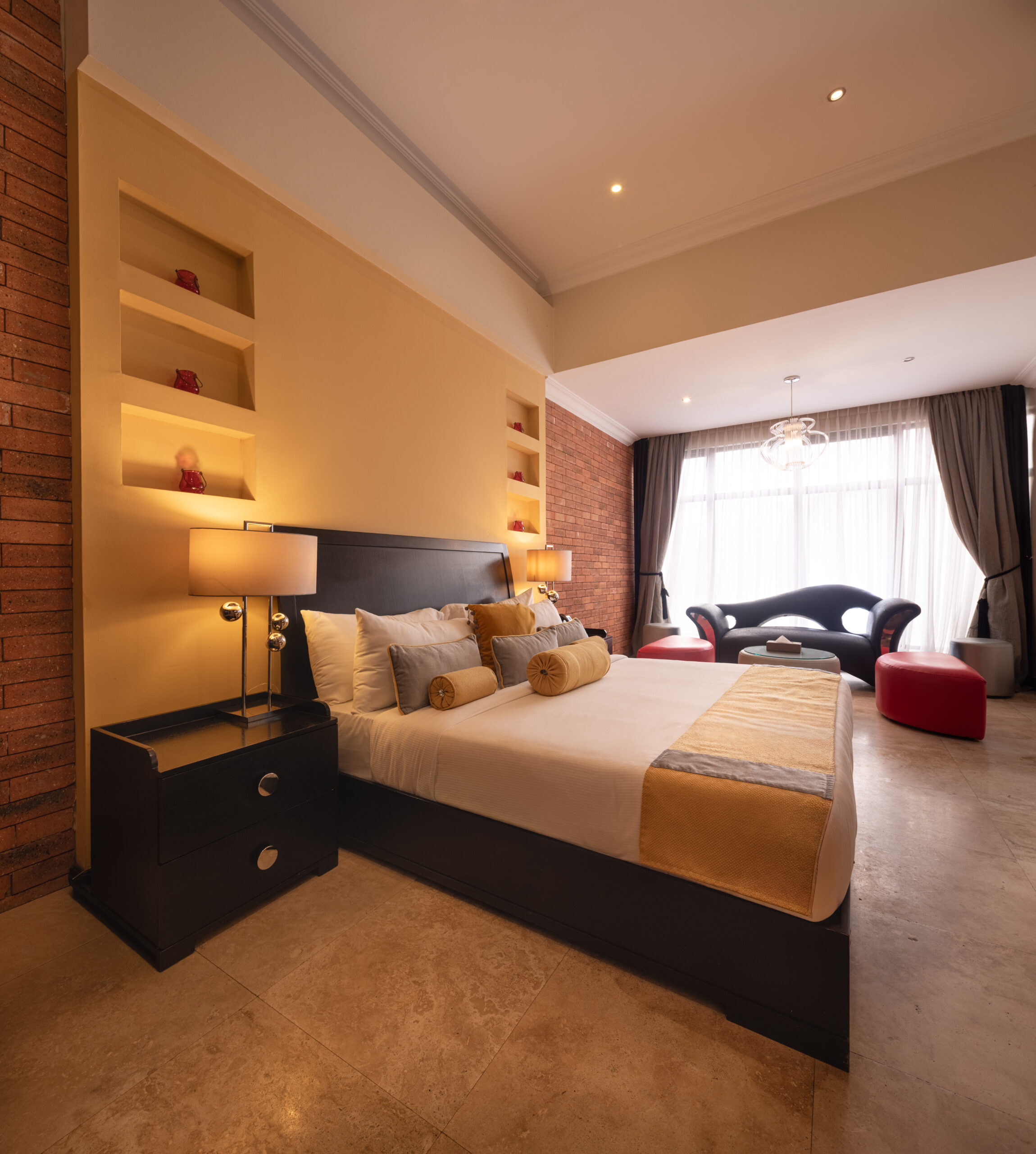 The Kwame Nkrumah Presidential Suite glows in bold gold, stately, indulgent, a little dramatic, the room that knows it’s the main event. The Provence Suite feels like a detour through the French countryside, all sunlight and charm, the kind of space Marie Antoinette might have claimed for herself. And the Eclectic Soho Suite? Exposed brick, bold art, a bit of edge, the attitude of downtown New York with Accra polish.