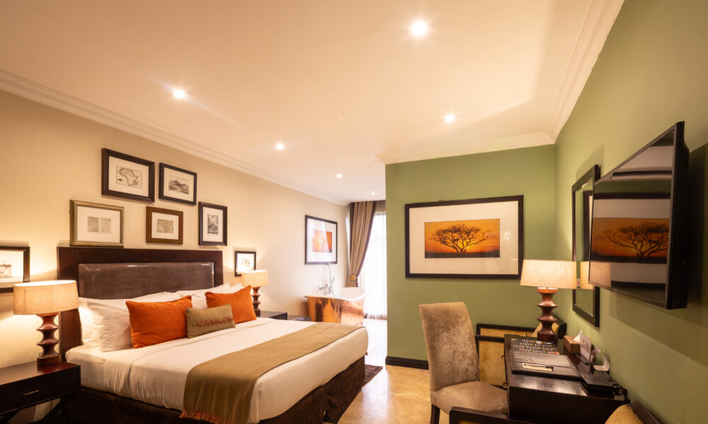 The Kwame Nkrumah Presidential Suite glows in bold gold, stately, indulgent, a little dramatic, the room that knows it’s the main event. The Provence Suite feels like a detour through the French countryside, all sunlight and charm, the kind of space Marie Antoinette might have claimed for herself. And the Eclectic Soho Suite? Exposed brick, bold art, a bit of edge, the attitude of downtown New York with Accra polish.