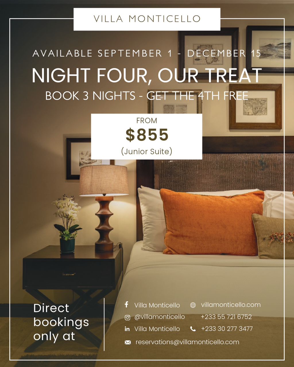 SuiteEscape, the Villa Monticello Way. Three nights are cute. Four feels like main-character energy. Stay 3 nights, get the 4th for free